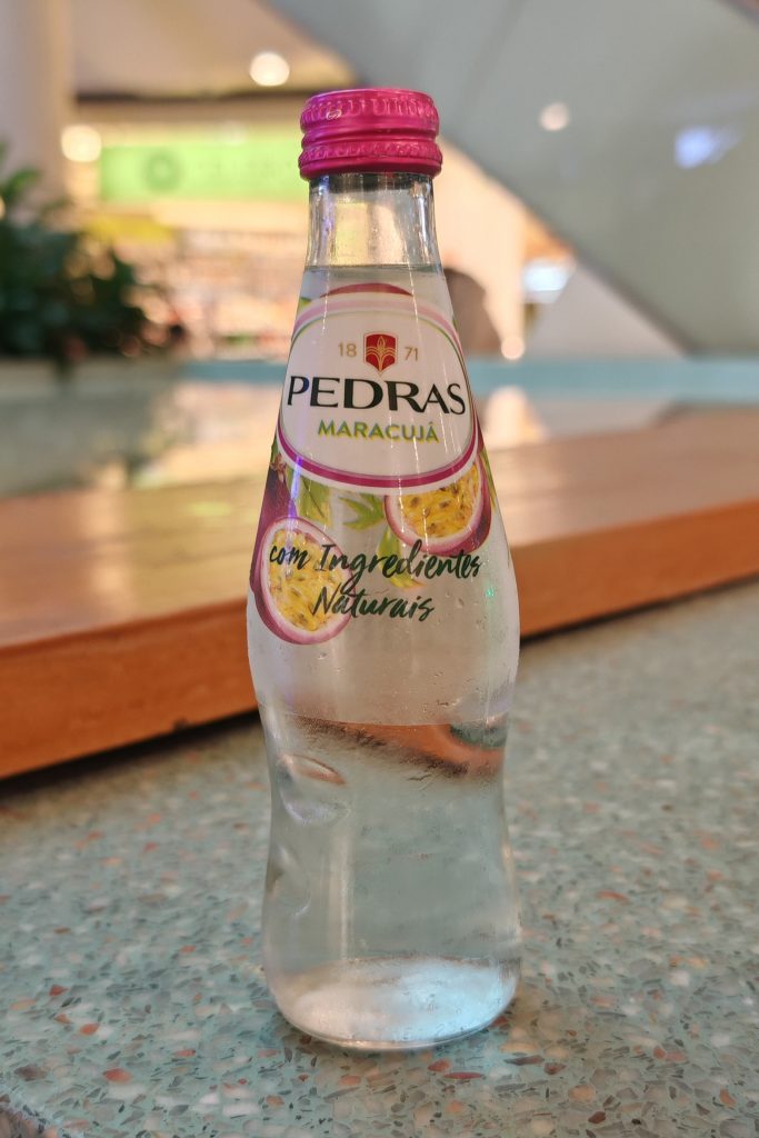 Côté boissons, j’ai beaucoup apprécié la boisson Pedras Maracuja, disponible dans la plupart des supermarchés, notamment Continente; vous les trouverez dans les supermarchés Minipreço mais uniquement en pack. Les portugais le qualifient comme une eau gazeuse aux fruits de la passion. Cela reste assez sucré, cela se rapproche plus d’une limonade que d’un Perrier aromatisé ! Néanmoins, le goût à été nouveau pour moi et j’ai trouvé ça délicieux. J’ai également testé aux fruits rouges (frutos vermelhos), qui ressemblait à la Volvic fraise pétillante et plus sucrée, mais j’ai préféré aux fruits de la passion.