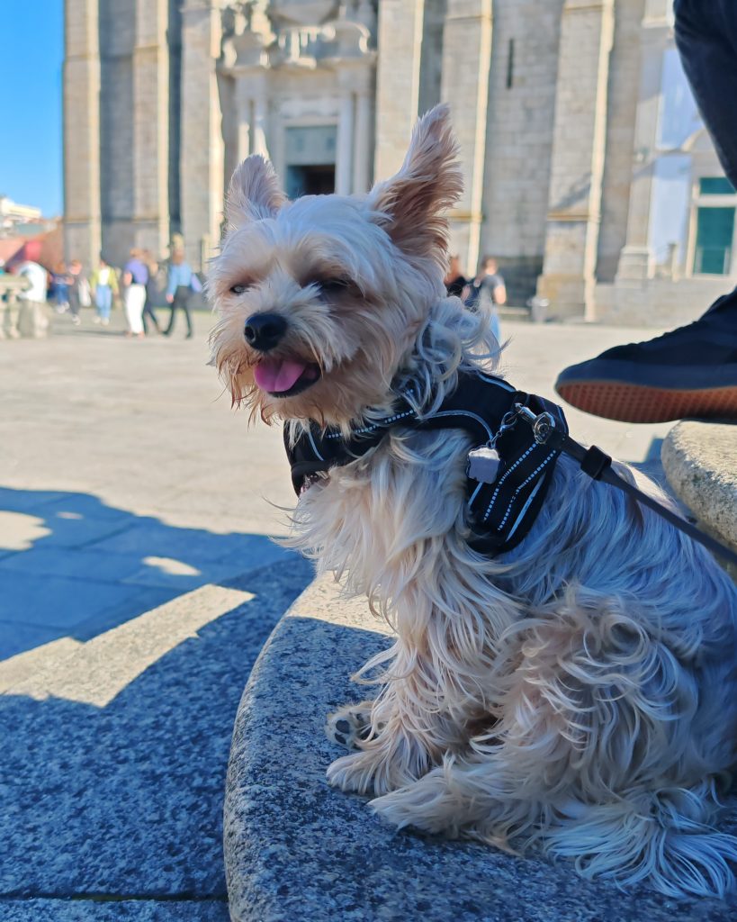 Nous avons poursuivi notre chemin vers Sé do Porto, soit la cathédrale de Porto, qui se trouve sur une place très charmante où un homme jouait du piano, c’était très apaisant avec tous ses éléments ainsi que le soleil et la vue imprenable sur la ville que ce lieu offrait. Nous nous sommes posées et avons contemplé tous les recoins des éléments constituants la place, car c’était vraiment agréable et également parce que Pralinette commençait à fatiguer… N’oubliez pas de faire des pauses régulières en se posant et en buvant pour vous et pour votre compagnon à quatre pattes !