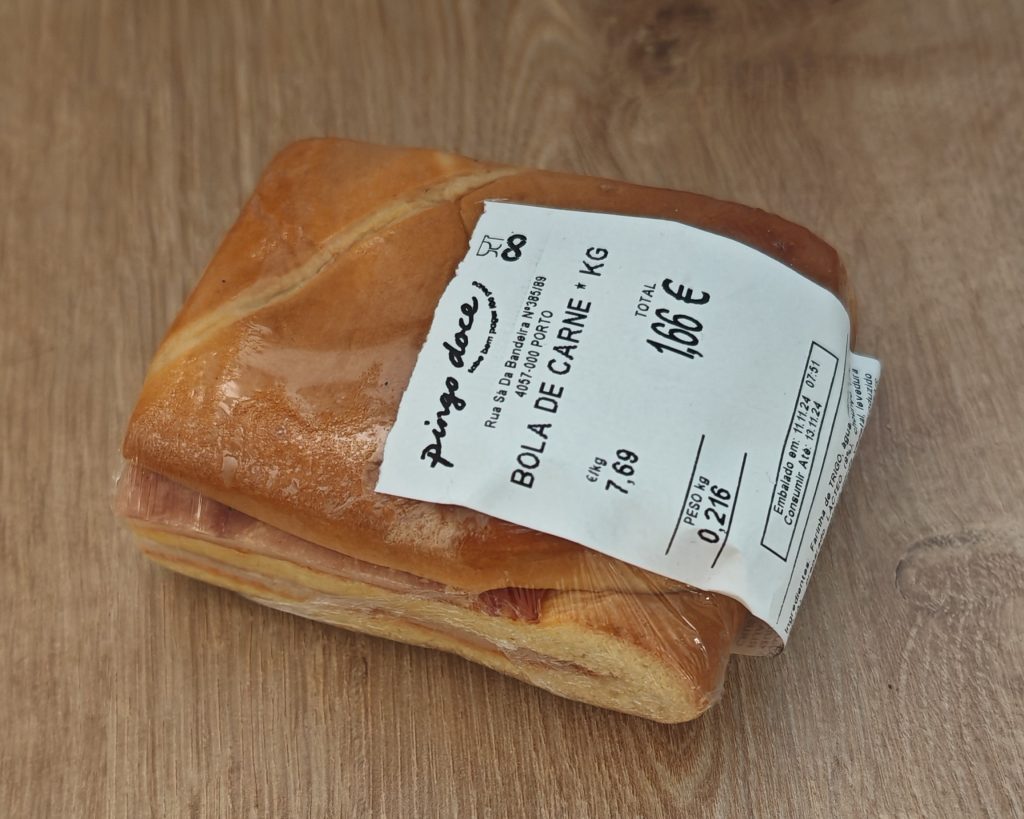 Un de mes petits plaisirs lorsque je voyage est de me rendre dans les supermarchés pour découvrir de nouveaux plats, boissons, fruits, gâteaux et autres gourmandises ! Dès mon arrivée à Porto, je n’ai donc pas chômé et ai fait un tour à Pingo Doce, où j’ai pu me constituer un véritable butin pour seulement 17,24€ : 1 sandwich Serrano, 1 calzone mozzarella, 1 pastel de bacalhau (acra de morue, très bon), 1 merenda mista (casse-croûte au jambon, sans plus), 1 barquette de broz castellar (dessert à la patate douce, que je n’ai pas du tout aimé), 1 croissant brioché, 1 bola de berlim (beignet type à la crème aux œufs), 1 salame de chocolate, 1 barquette de 6 kiwis jaunes, 1 cannette de Coca, 1 canette de Sumol Ananas (trop sucré pour moi, on dirait de la limonade avec du jus d’ananas, mais avec le sucre des deux additionné ^^), 2 briquettes de boissons chocolatées et des couverts. Vous pourrez aussi y retrouver des rissols de carne/camarão (beignets à la viande ou à la crevette), qui sont également des spécialités portugaises.