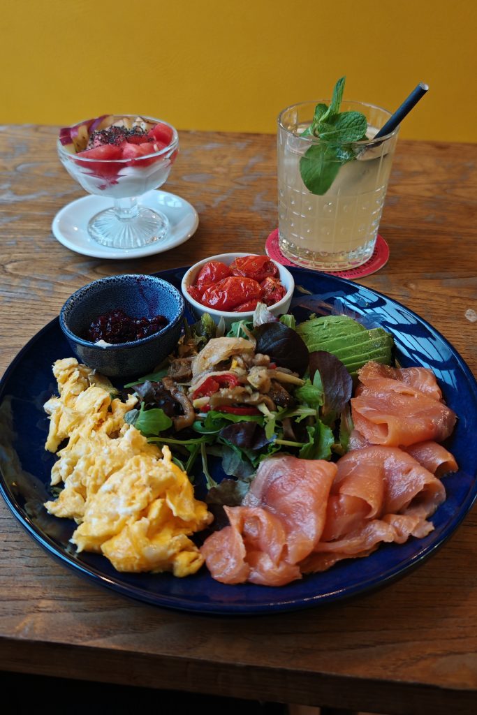 Mon dernier jour, j’ai testé le brunch de chez Deli Deli. Il servent des brunchs tous les jours et sont pet friendly; il m’ont d’ailleurs tout de suite apporté de l’eau pour Praline. J’ai opté pour un délicieux citron pressé er le “Deli brunch”, qui était composé d’oeufs brouillés, d’avocat, de saumon fumé, de salade et de pain avec confiture (que j’ai échangé contre des fruits rouges), avec un yaourt avec des fruits des graines de chia. Le tout pour 18,45€ (15,95€ le brunch + 2,50€ la boisson). Je me suis régalée et recommande vivement cet établissement pour une petite pause ou une pause très gourmande… au choix !